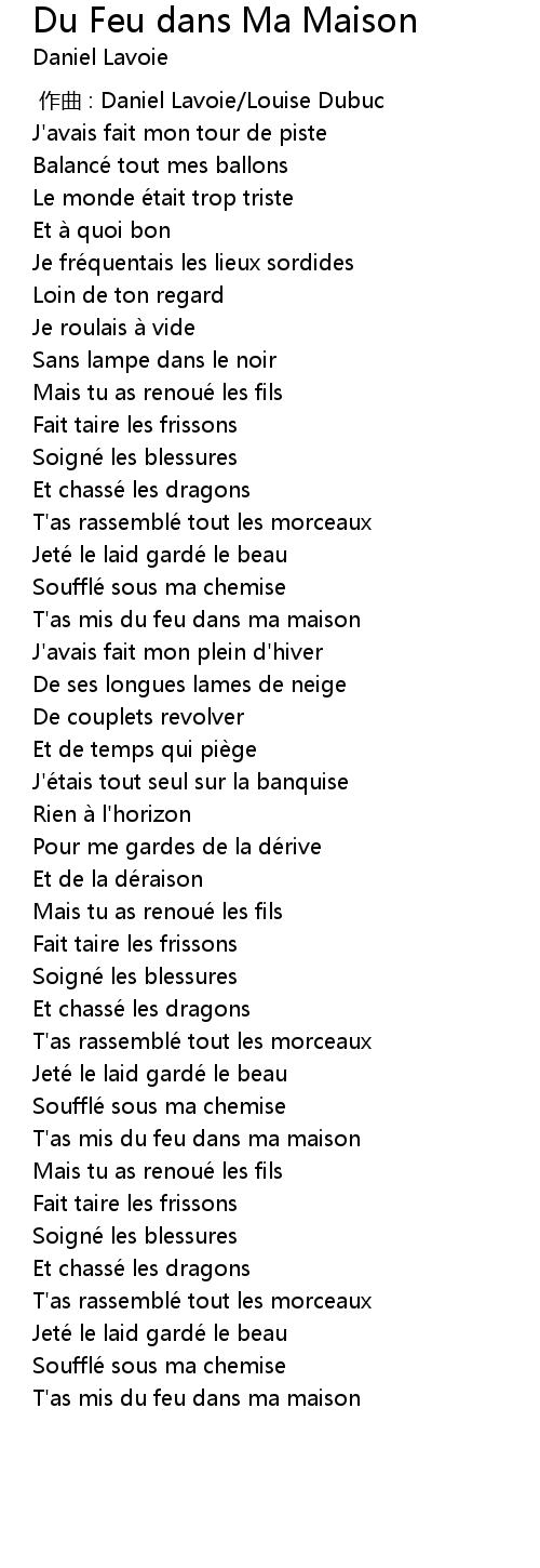 | [00:00.000] | zuo qu : Daniel Lavoie Louise Dubuc |