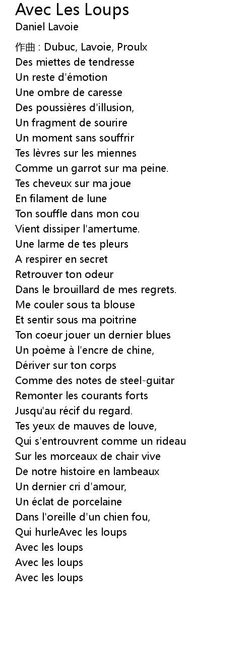 | 作曲 : Dubuc, Lavoie, Proulx | |