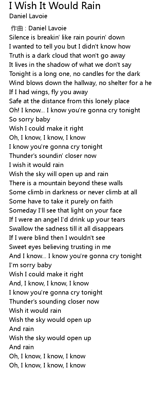 | [01:31.05] | Oh! I know... I know you're gonna cry tonight |