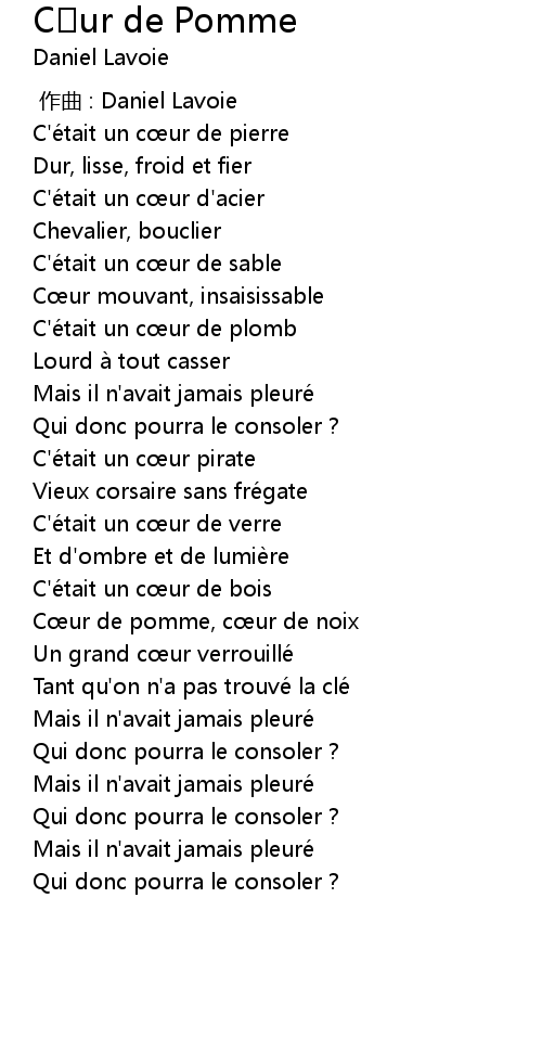 | [01:29.89] | C ur de pomme, c ur de noix |