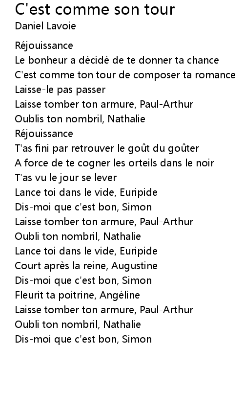 | [01:59.45] | Laisse tomber ton armure, PaulArthur |