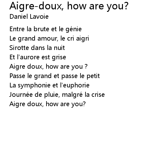 | Song | Aigre-doux, how are you? |