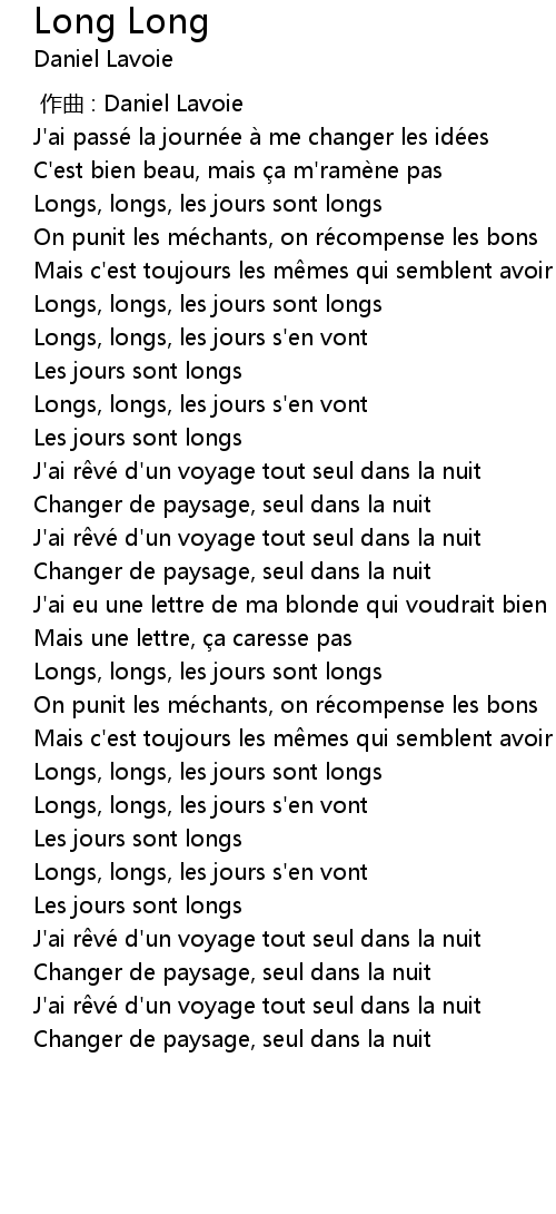 | [02:08.63] | Longs, longs, les jours sont longs |