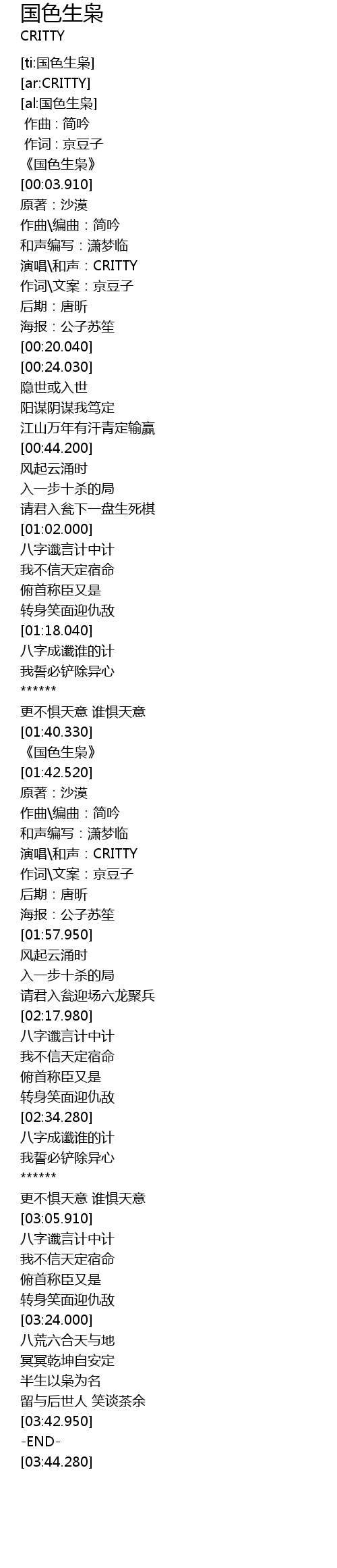 | [01:47.800] | 演唱\和声:CRITTY |