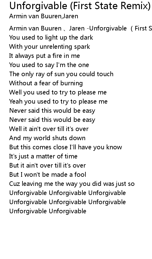 | [04:51.660] | Unforgivable Unforgivable Unforgivable |