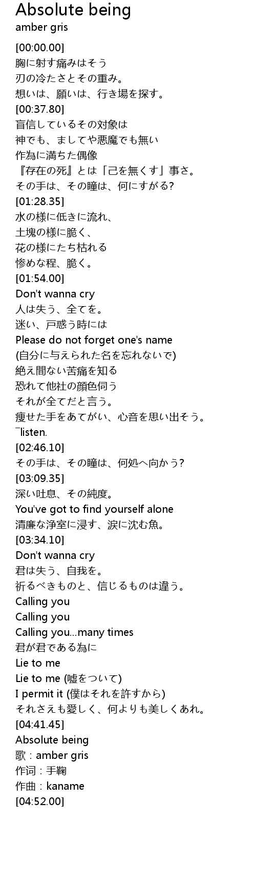 | [02:16.35] | Please do not forget one's name (自分に与えられた名を忘れないで) |