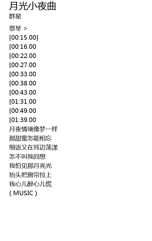 | [02:44.00][01:39.00][00:55.00] | 啊....月光 |