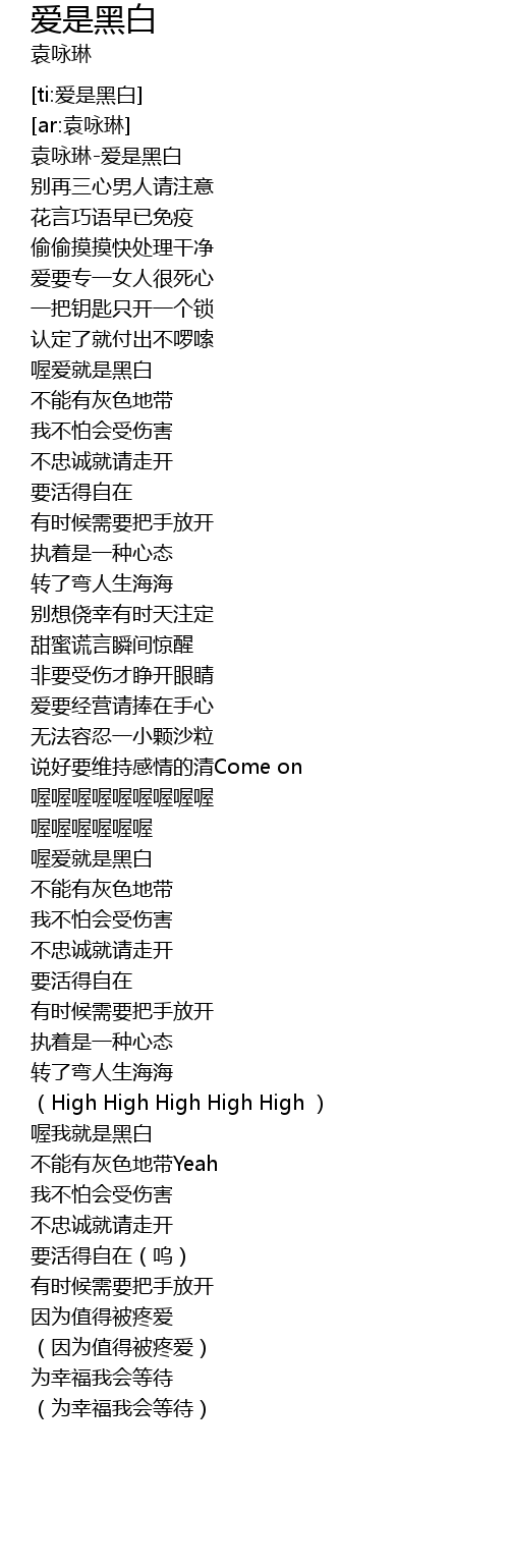 | [00:00.882] | yuán yǒng lín ài shì hēi bái |