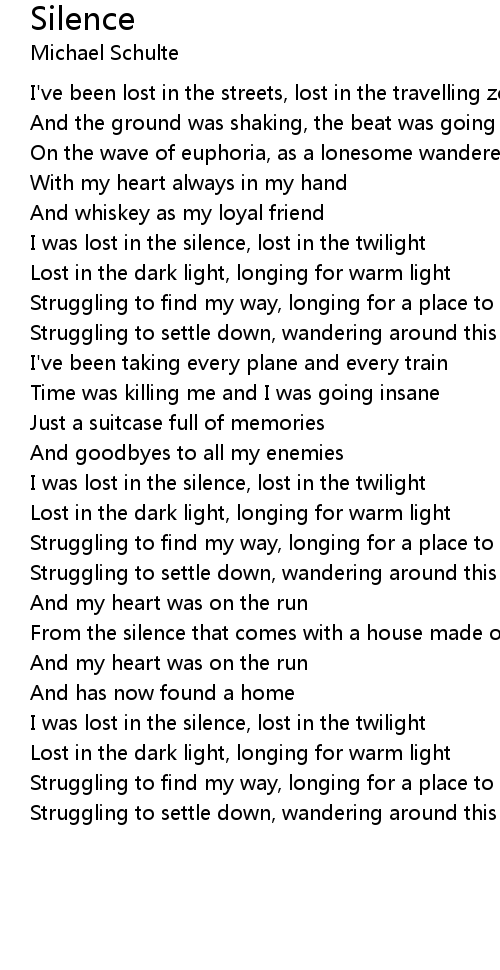 I was lost in the silence, lost in the twilight |