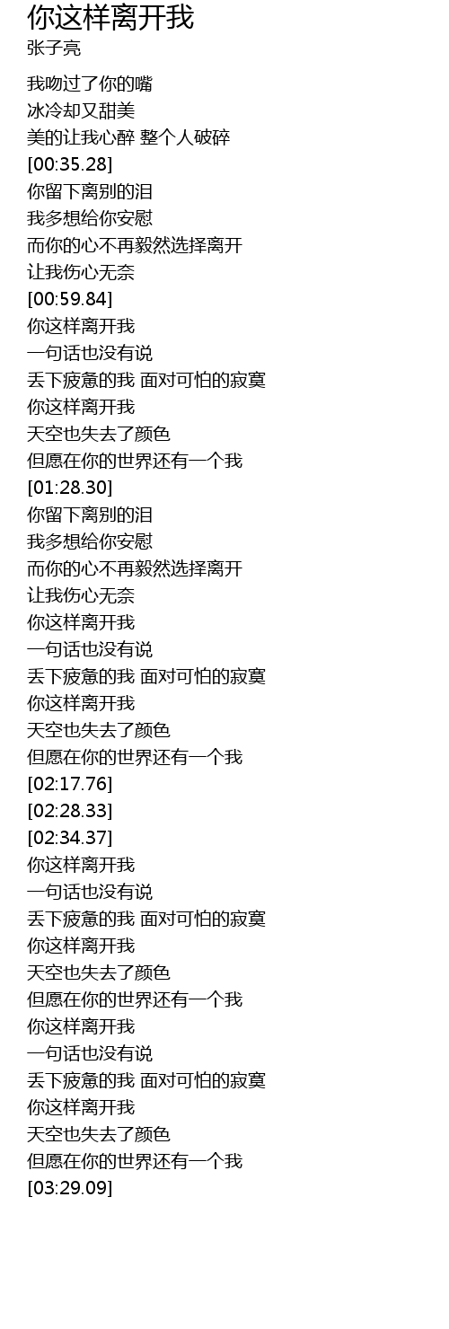 | [03:03.59] | nǐ zhè yàng lí kāi wǒ |