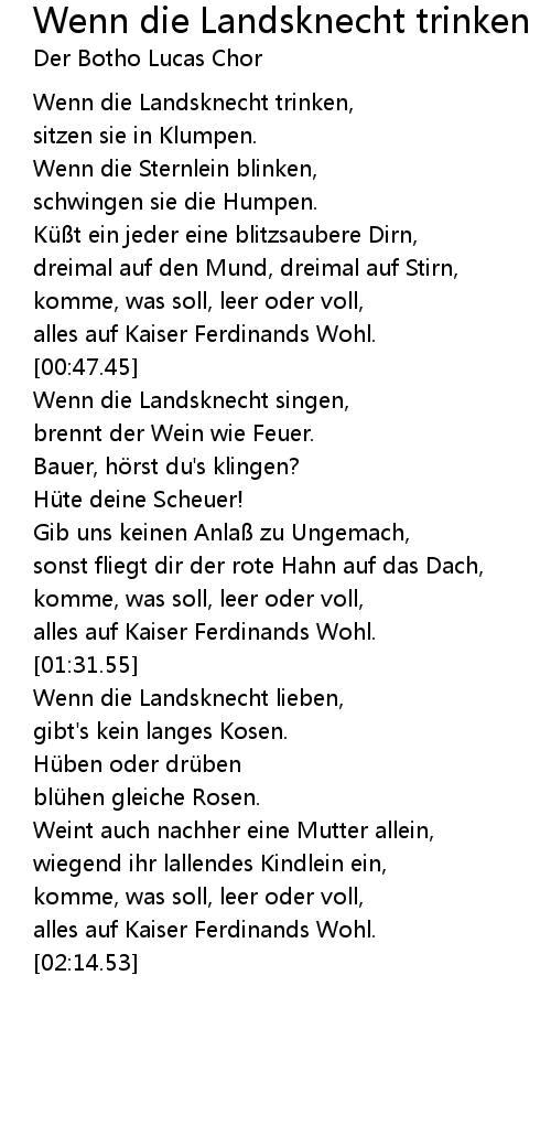 | Song | Wenn die Landsknecht trinken |