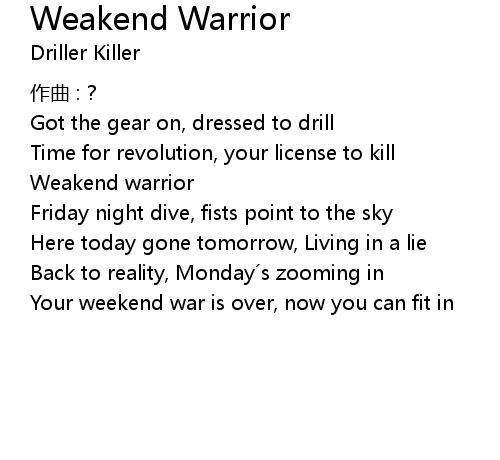 | Song | Weakend Warrior |