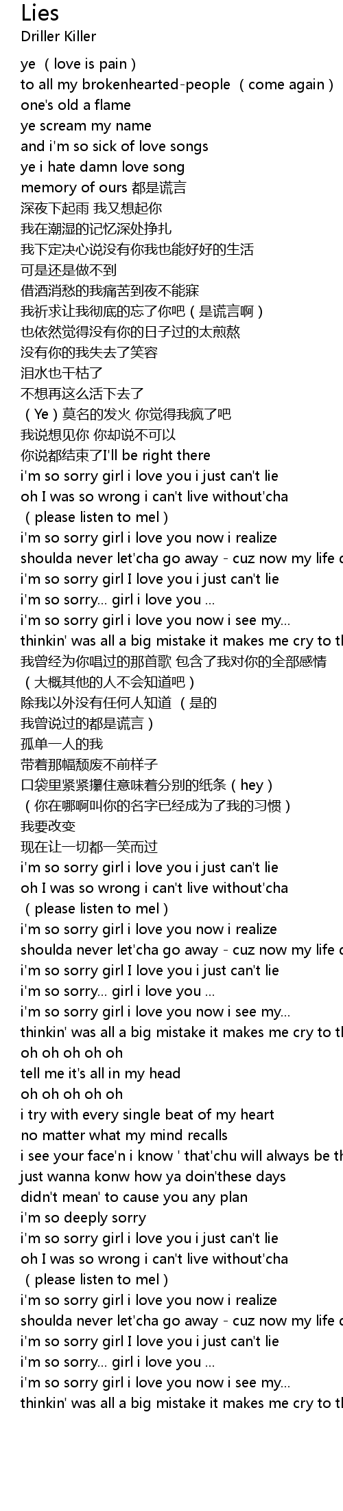 | [03:20.55] | i'm so sorry girl I love you i just can't lie |