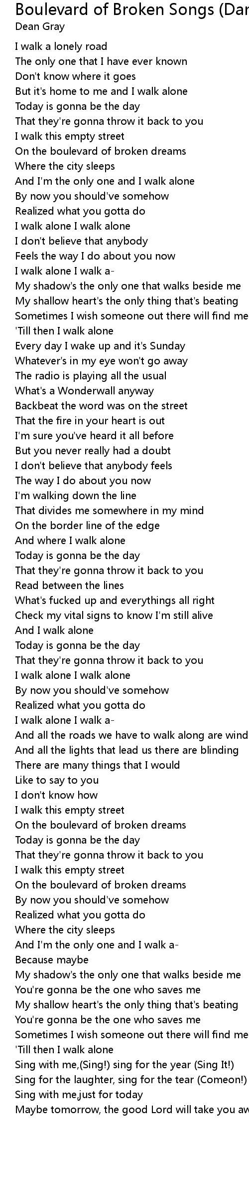 Boulevard of Broken Songs (Dance Remix) Lyrics