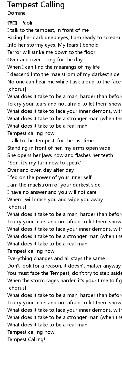 | What does it take to be a stronger man when the Tempest in raging on | |