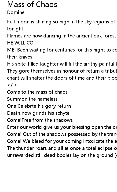 Come to the mass of chaos |