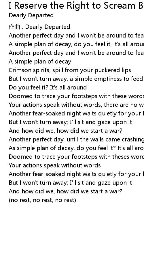 | Song | I Reserve the Right to Scream Bloody Murder |