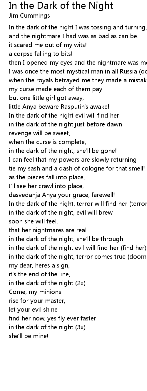 In the dark of the night, terror will find her (terror's the least I tell you!) |
