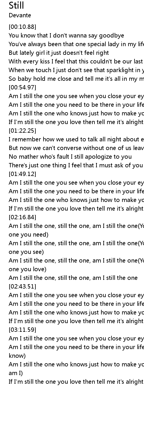Am I still the one, still the one, am I still the one(You're the only one you need) |