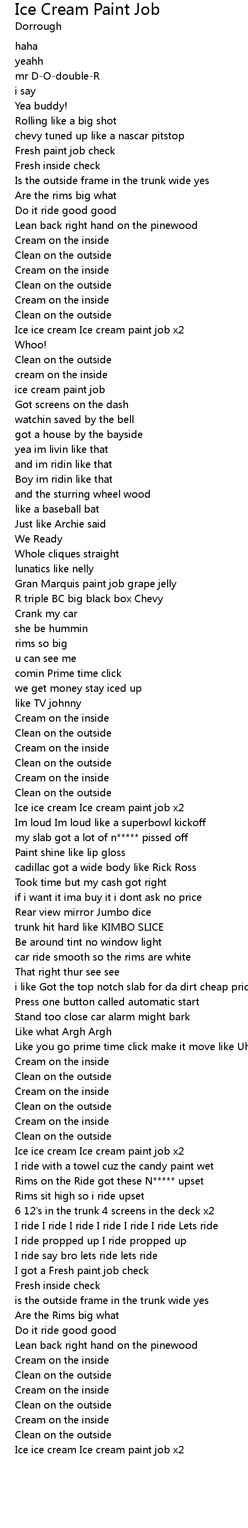 | [00:28.18]Ice ice cream Ice cream paint job x2] | |