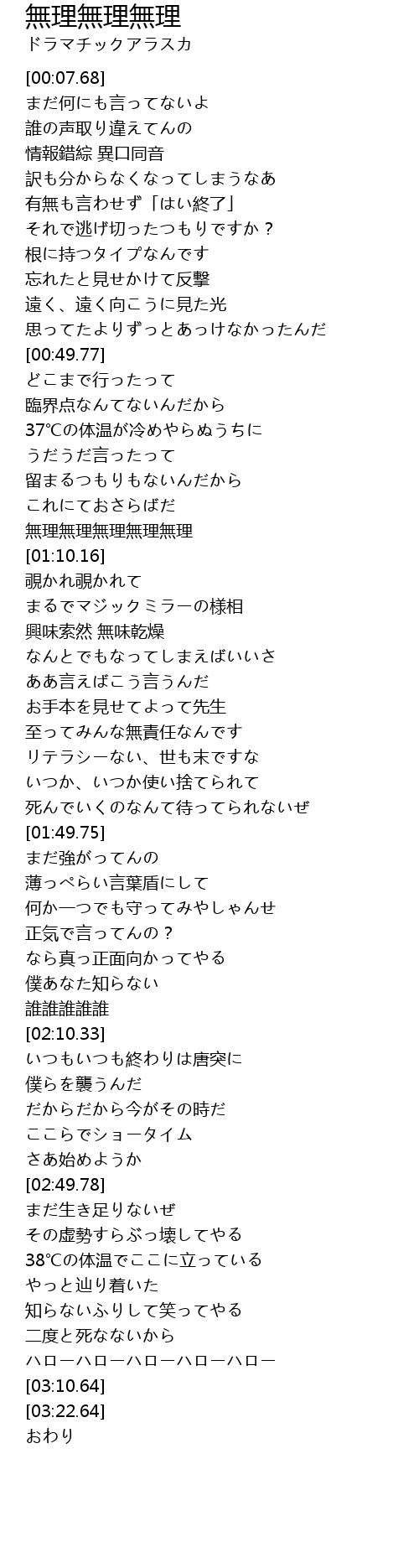 | [00:54.69] | 37℃の体温が冷めやらぬうちに |