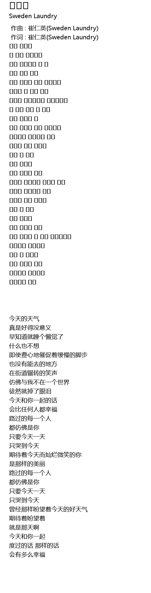 | [00:01.00] | 作词 : 崔仁英(Sweden Laundry) |