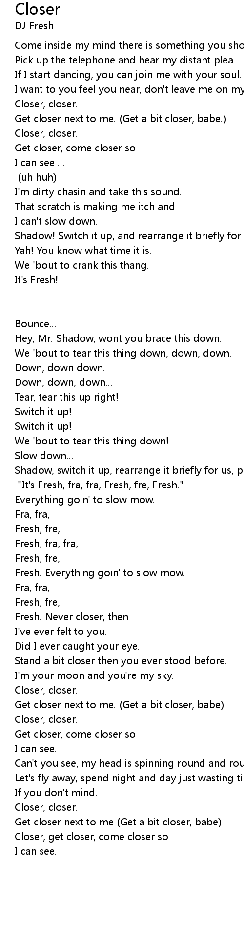 | Get closer next to me. (Get a bit closer, babe.) | |