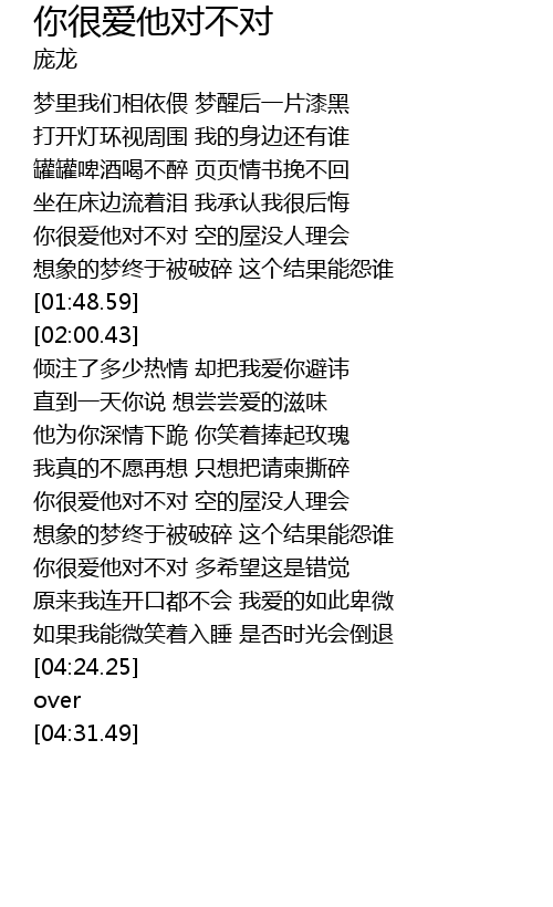 | [01:19.04] | 你很爱他对不对 空的屋没人理会 |