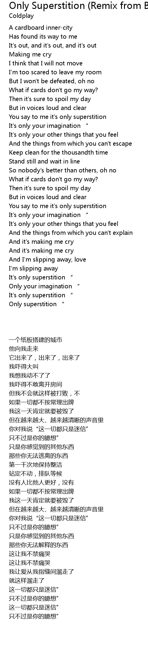 | Song | Only Superstition (Remix from Brothers & Sisters) |