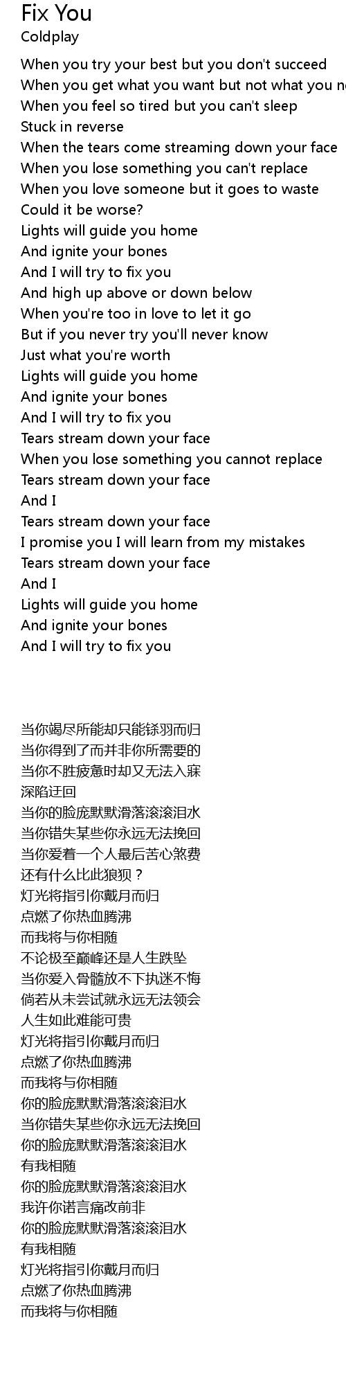 And I will try to fix you |