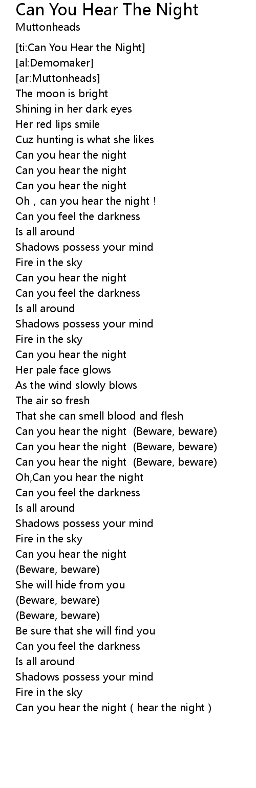 | [02:01.40] | Can you hear the night (Beware, beware) |