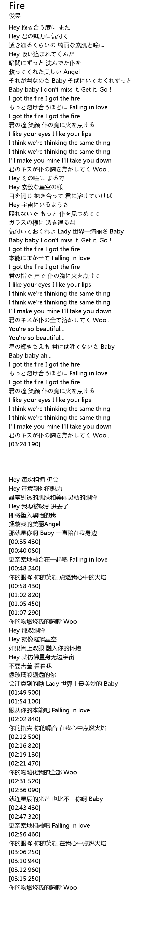 | [03:19.890] | 君のキスが仆の胸を焦がしてく Woo... |