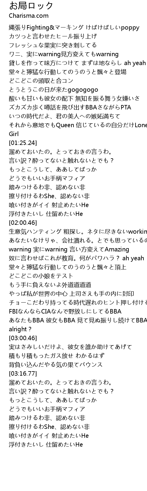 | [02:39.38] | やっぱ私が世界の中心 上司さえも手の内に封印 |
