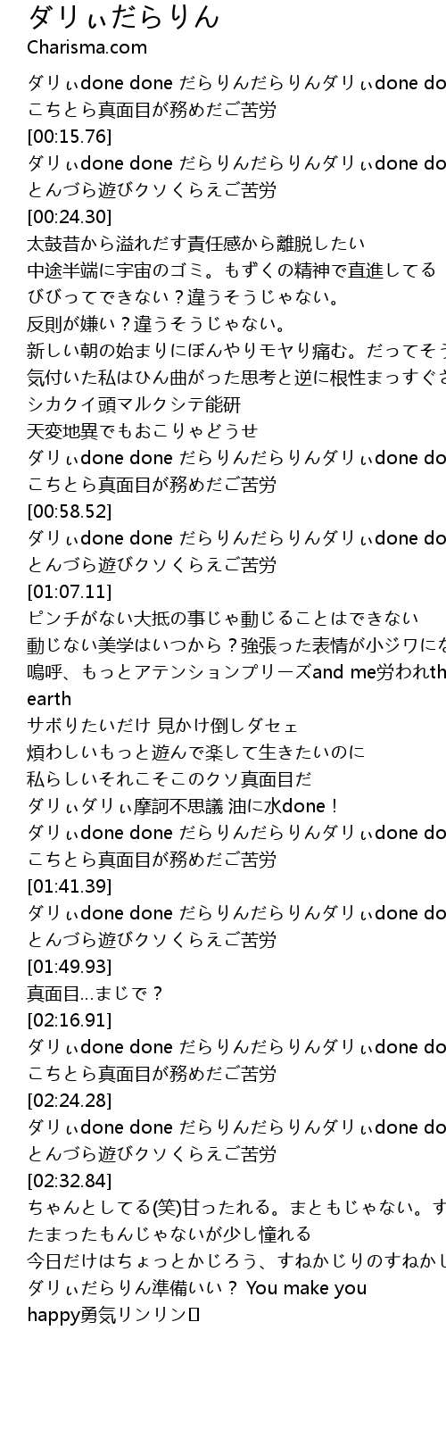 | [02:17.61] | ダリぃdone done だらりんだらりんダリぃdone done |