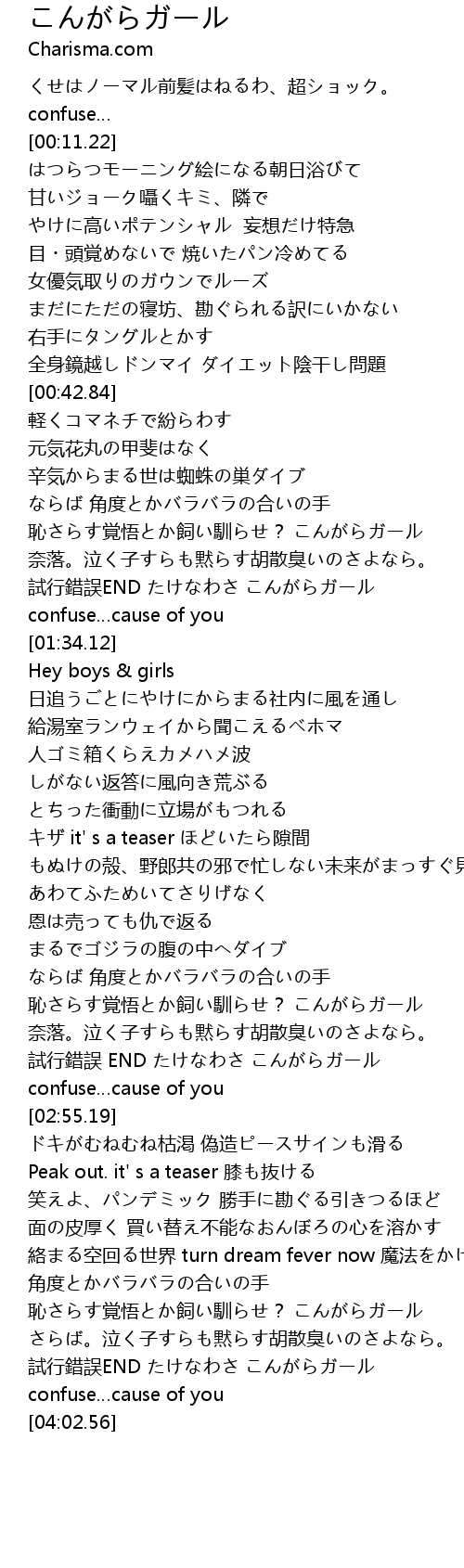 | [02:20.76] | 恥さらす覚悟とか飼い馴らせ? こんがらガール |