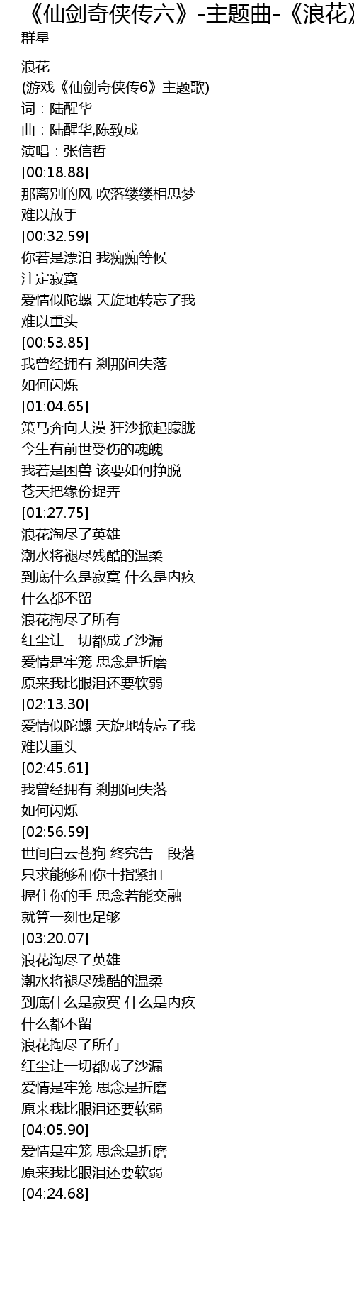 | [00:02.48] | (游戏《仙剑奇侠传6》主题歌) |
