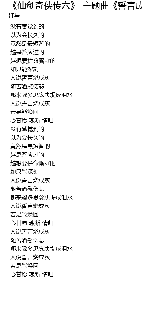 | Song | 《仙剑奇侠传六》-主题曲《誓言成晖》 |