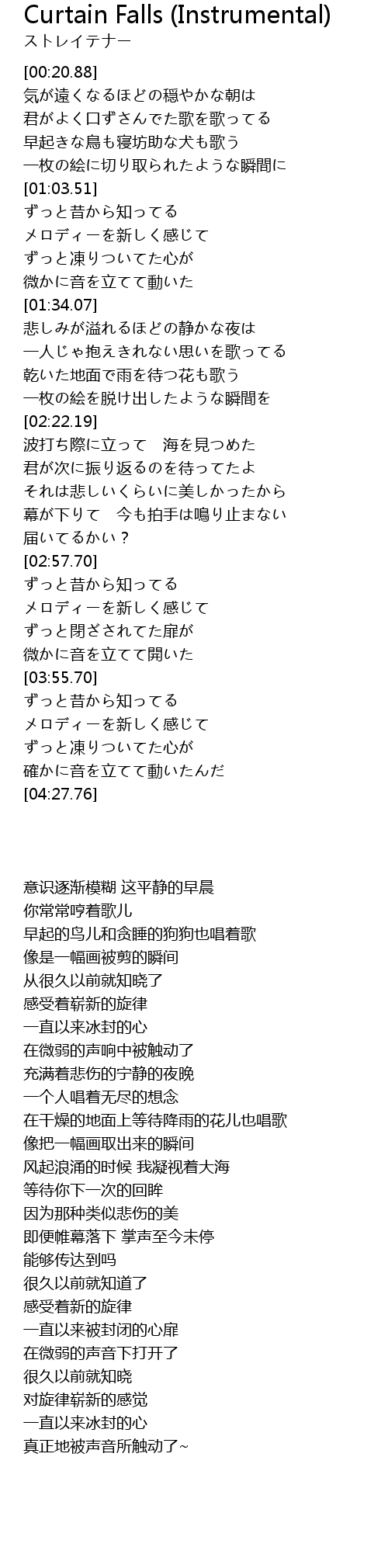 | [02:46.50] | 幕が下りて 今も拍手は鳴り止まない |