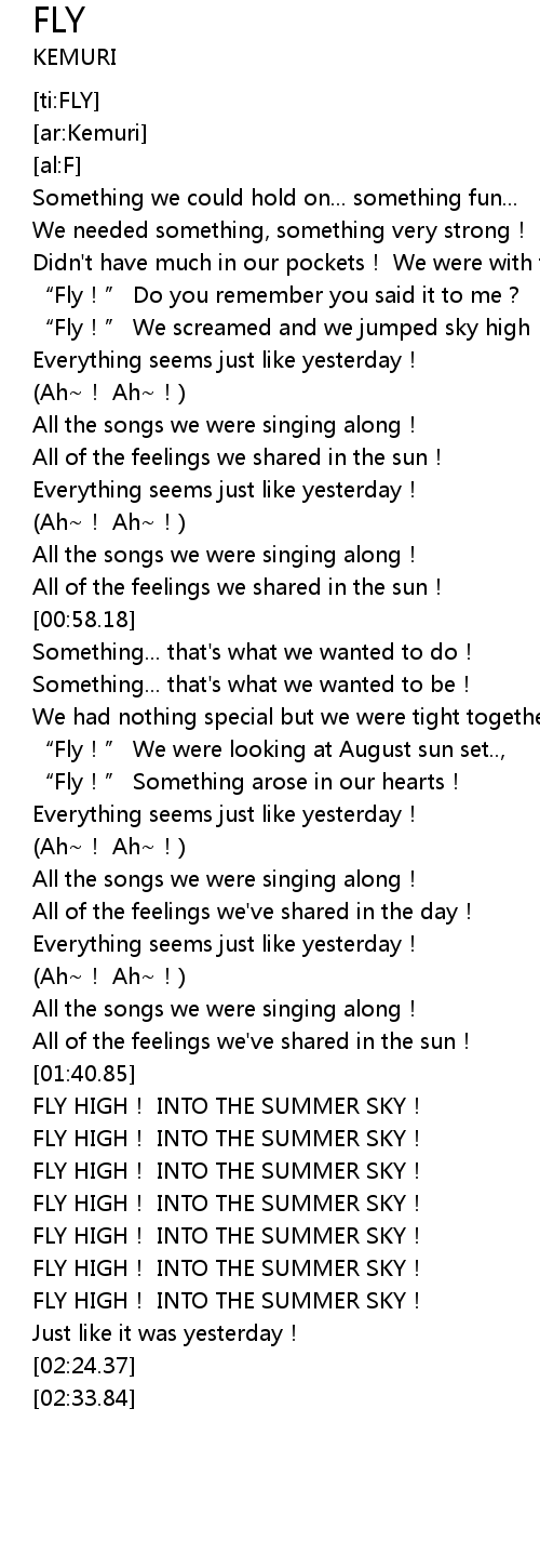 | [02:02.75] | FLY HIGH! INTO THE SUMMER SKY! |