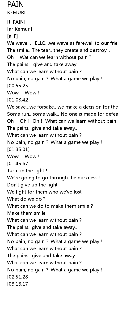 | [00:39.71] | Oh! Wat can we learn without pain? |
