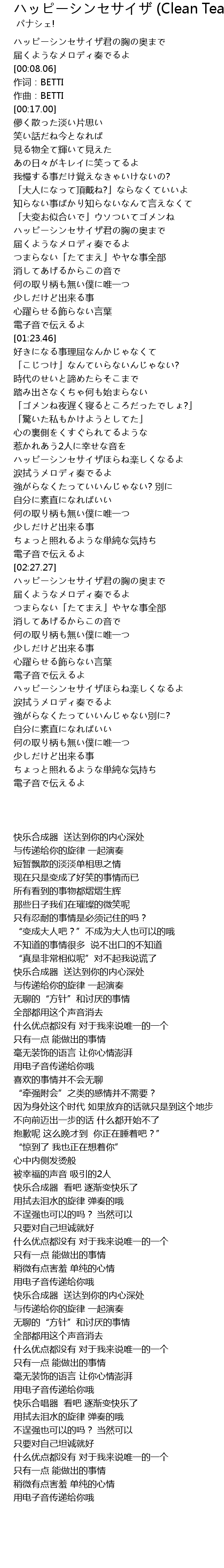 | [03:14.94] | ハッピーシンセサイザほらね楽しくなるよ |