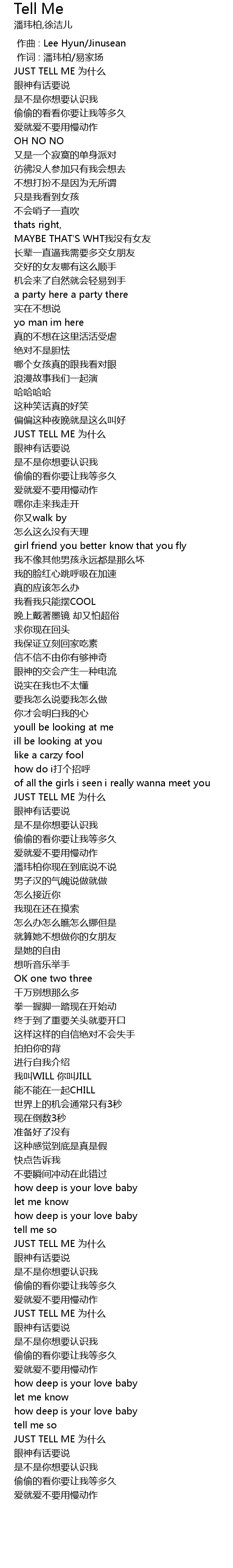 | [01:39.446] | JUST TELL ME wèi shí me |