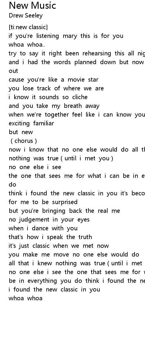 | [01:34.230] | no one else i see the one that sees me for what i can be in everything you do think i found the new classic in you think i found the new classic in you |