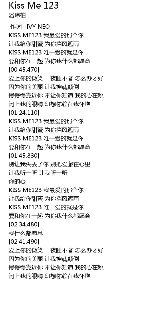 | [00:24.100] | KISS ME123 我最爱的那个你 |