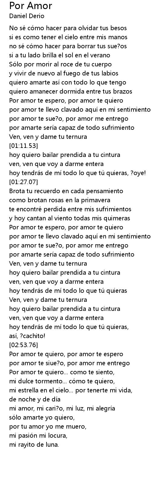 | [03:17.32] | Por amor te quiero... como te siento, |