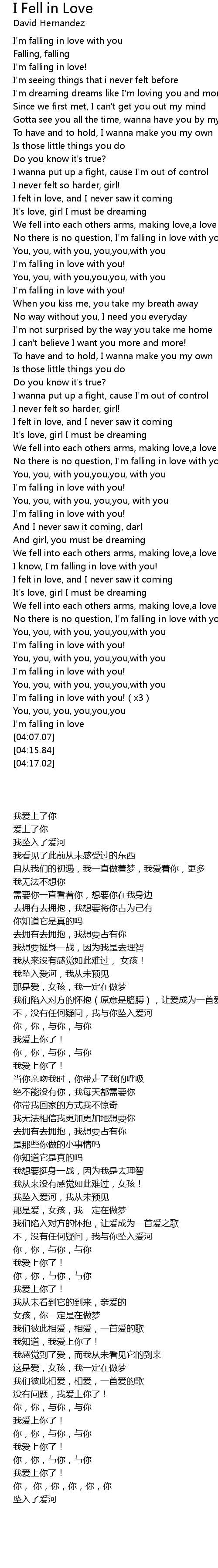 | [04:04.47] | I'm falling in love |