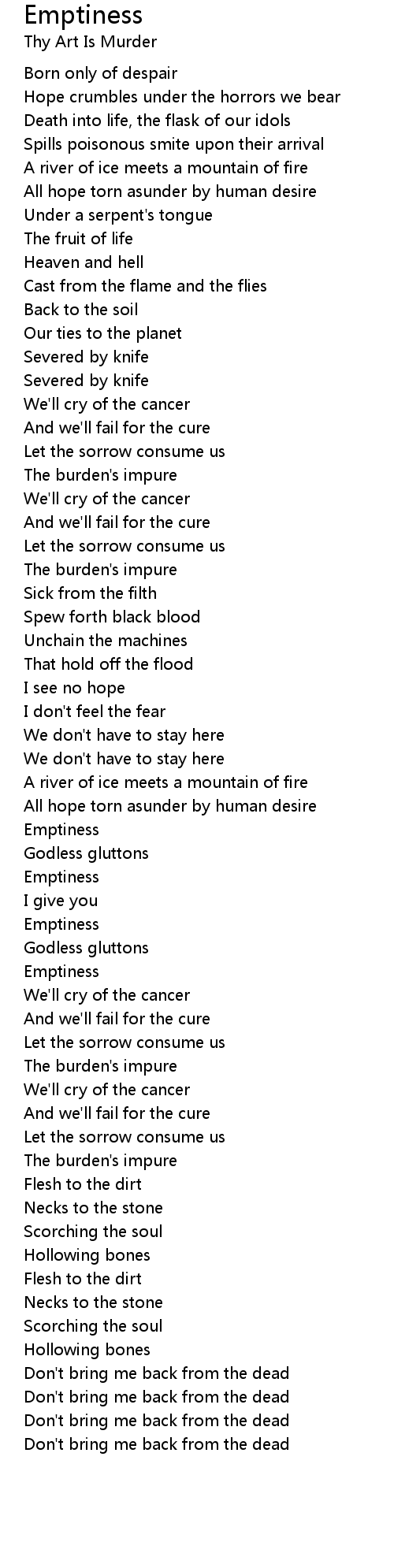 Hope crumbles under the horrors we bear |