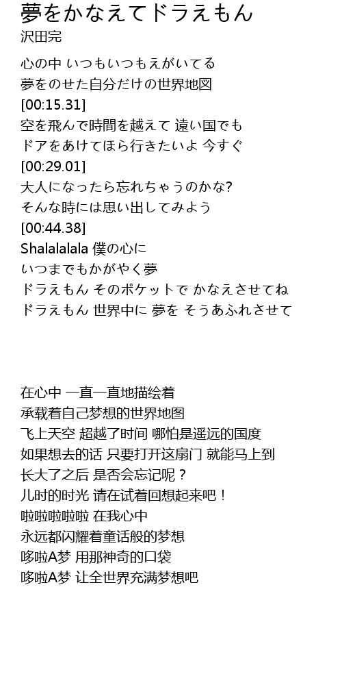 | [00:51.48] | ドラえもん そのポケットで かなえさせてね |