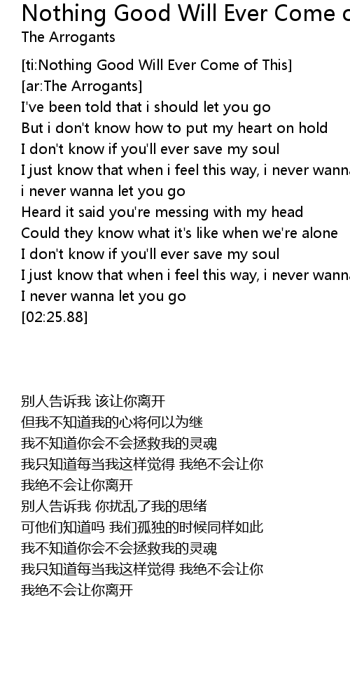 [ti:Nothing Good Will Ever Come of This] |
