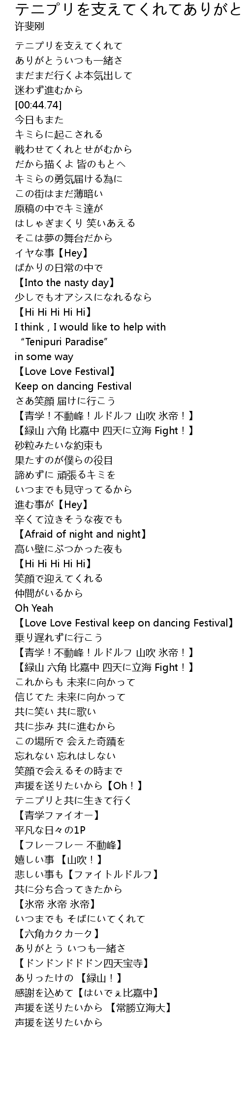 | [02:17.25] | 【緑山 六角 比嘉中 四天に立海 Fight!】 |